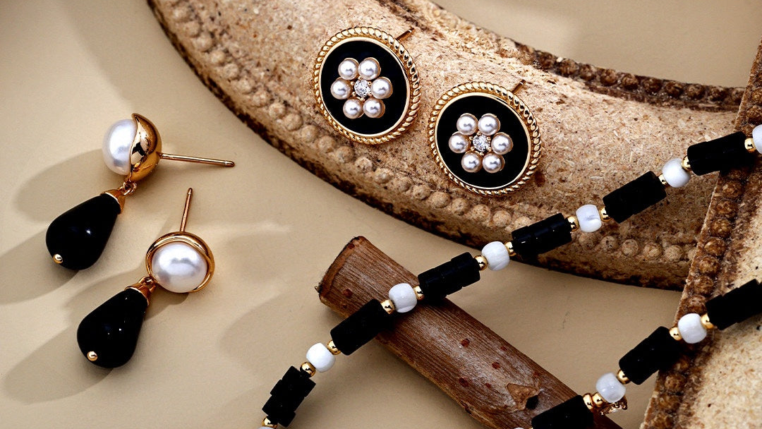 Material & Details • Material: 925 sterling silver • Finish: Vintage gold • Design: Black enamel base with pearl flower detail • Ring Size: Approx. US 7 (around size 14, adjustable) A little romance, a touch of nostalgia. Featuring a delicate pearl flower set on a glossy black enamel base, this...